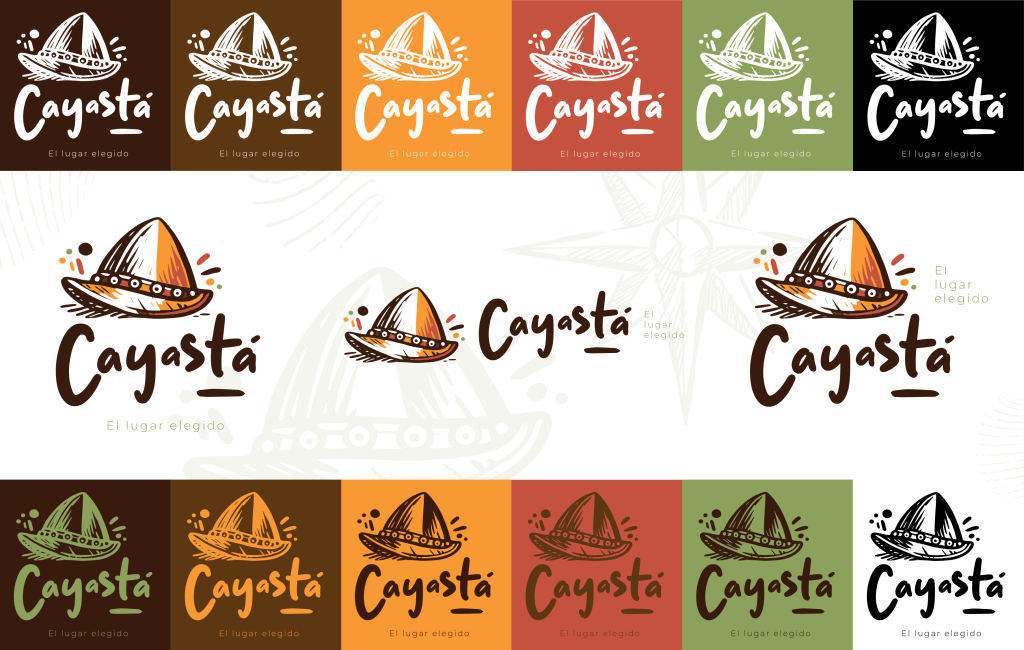 El logotipo, con la palabra “Cayastá”, utiliza una tipografía de trazo manual, fluida e irregular, que transmite cercanía, hospitalidad y calidez, reflejando el espíritu de su gente.